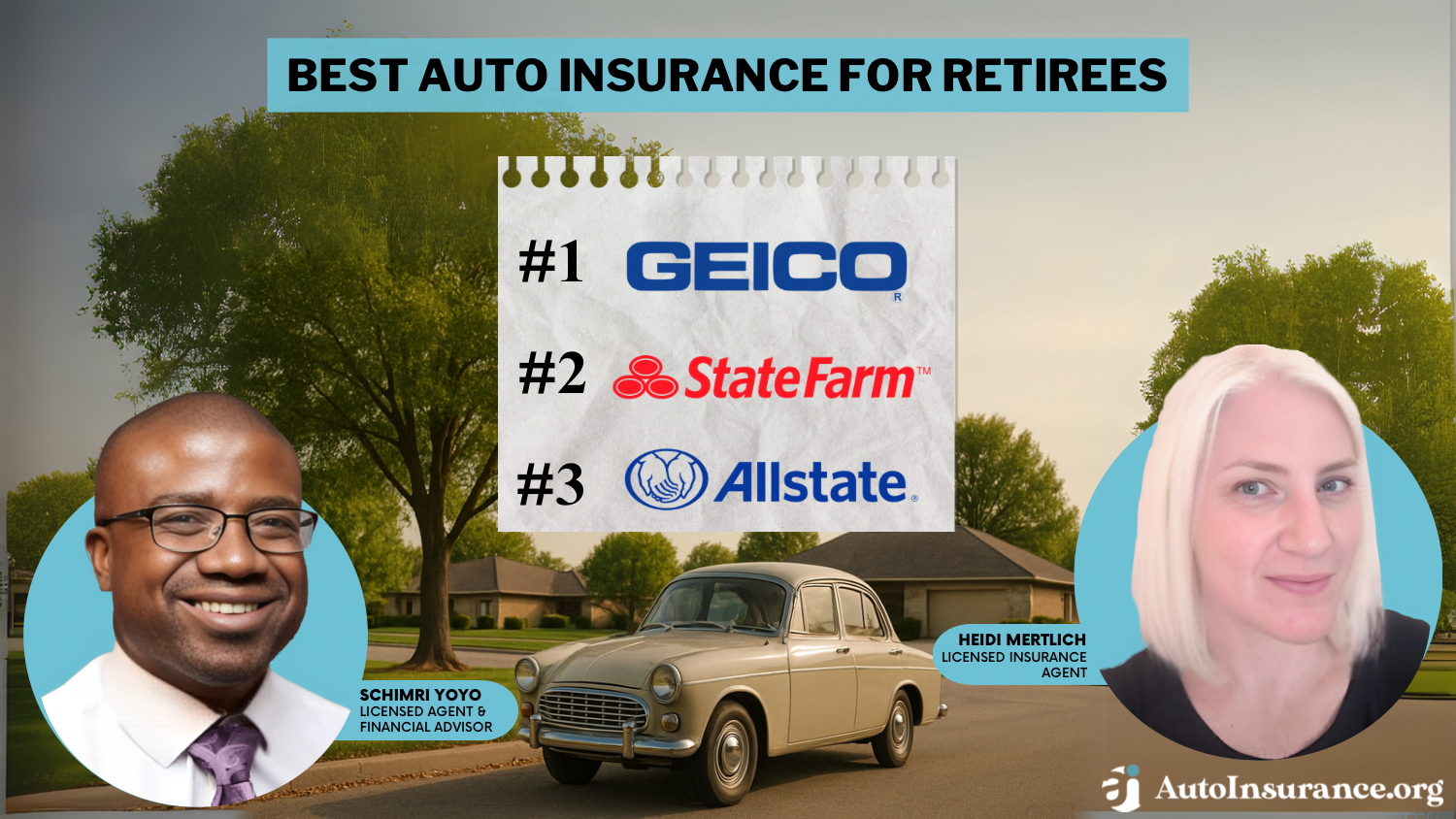 Find the best auto insurance for retirees with Geico, State Farm, and Allstate. Geico is our top pick with retiree discounts, affordable rates that average $42/mo for retiree drivers, and strong financial ratings. Retiree car insurance is often more affordable due to retirees' decreased driving time.