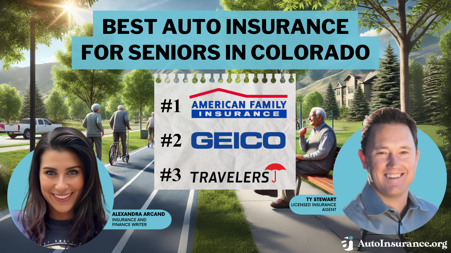 1,733 reviewsAmerican Family, Geico, and Travelers offer the best auto insurance for seniors in Colorado, with American Family offering the most competitive monthly rates.