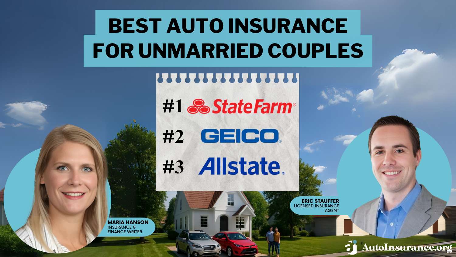State Farm, Geico, and Allstate offer the most affordable and flexible auto insurance options for partners, with rates starting at just $59 per month. The best auto insurance for unmarried couples includes joint policies, multi-vehicle discounts, and tailored coverage for domestic partners, roommates, or cohabiting couples.