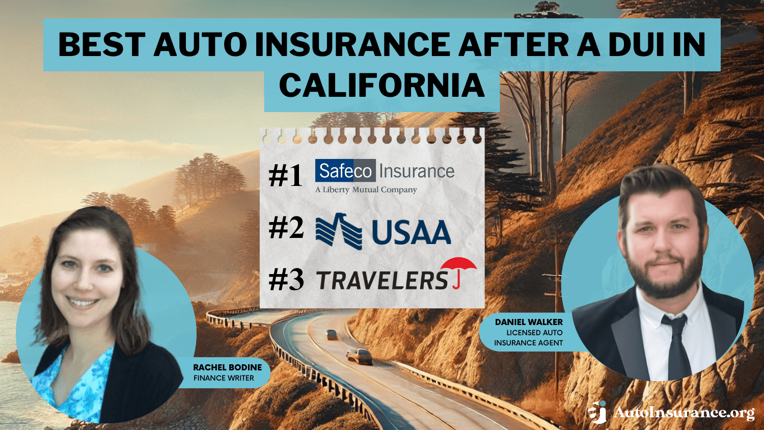 Safeco, USAA, and Travelers are the best California auto insurance companies after a DUI, with full coverage options and auto insurance discounts.