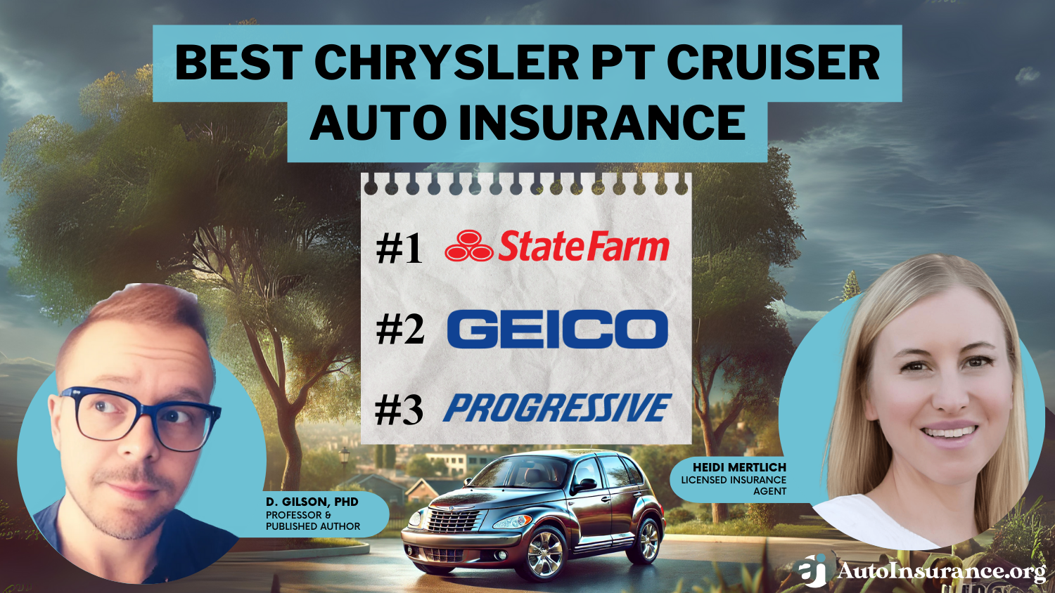 State Farm, Geico, and Progressive offer the best Chrysler PT Cruiser auto insurance at around $65 per month. These providers excel in coverage and customer service. Knowing how reliable is a PT Cruiser can impact insurance rates. Compare quotes now to find affordable rates for your Chrysler PT Cruiser.