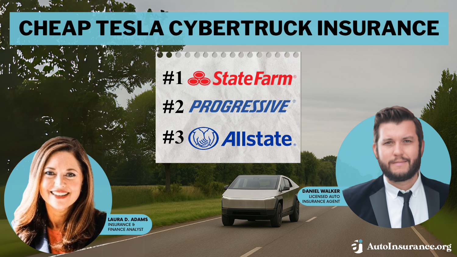 11,638 reviewsState Farm, Progressive, and Allstate all offer cheap Tesla Cybertruck insurance. State Farm is the cheapest, with rates starting at $129 per month.
