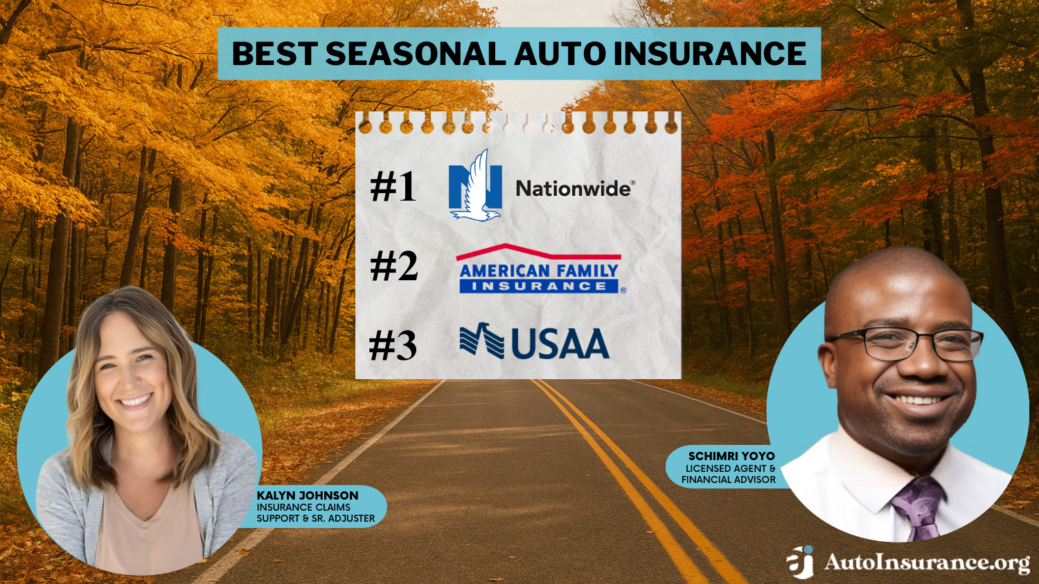 6,589 reviewsNationwide, American Family, and USAA have some of the best seasonal auto insurance for customers.