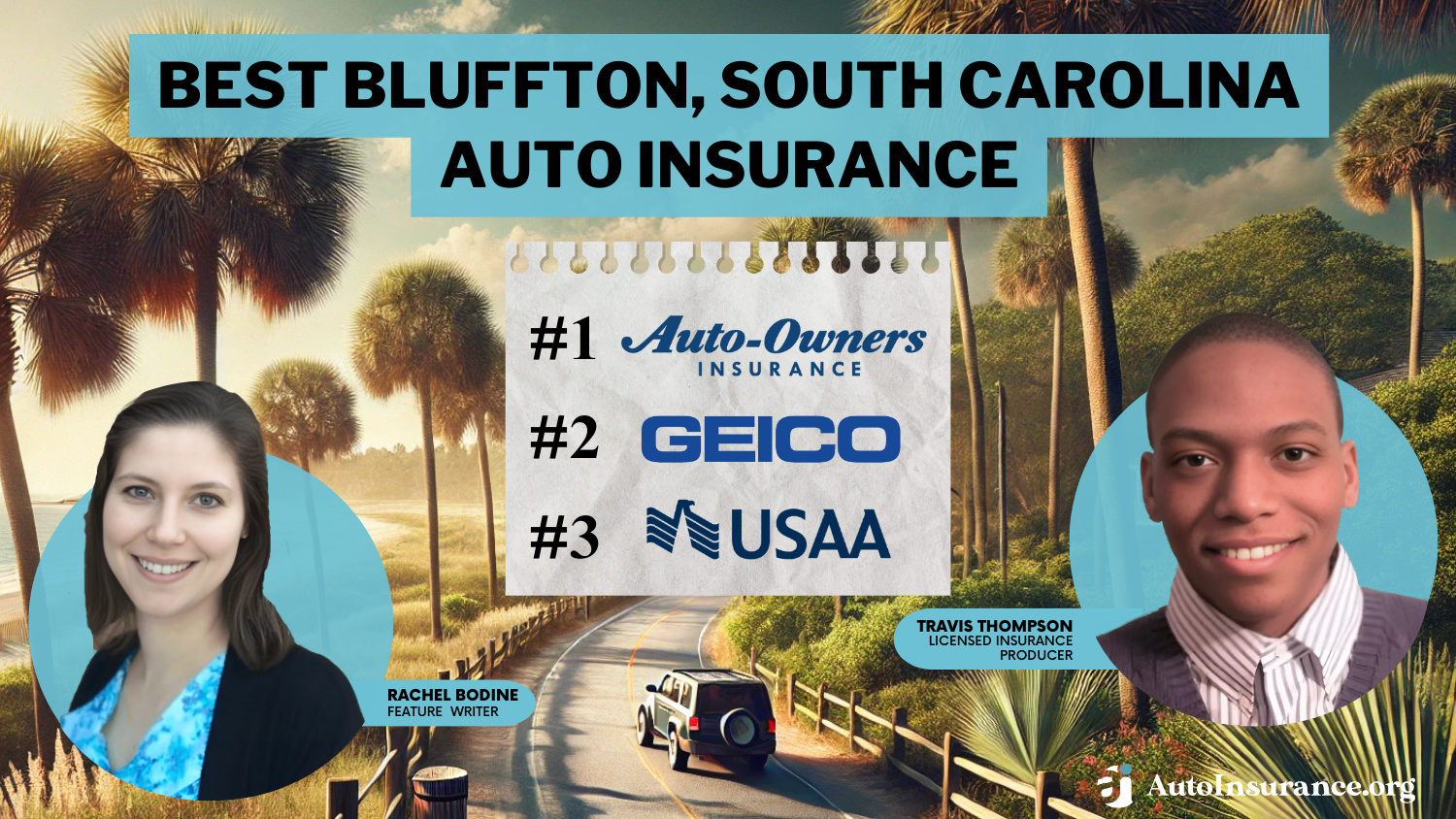 6,589 reviewsThe best Bluffton, SC auto insurance providers are Auto-Owners, Geico, and USAA, offering affordable rates starting at $30 per month. Auto-Owners excels because of its dependable claims process and overall coverage.
