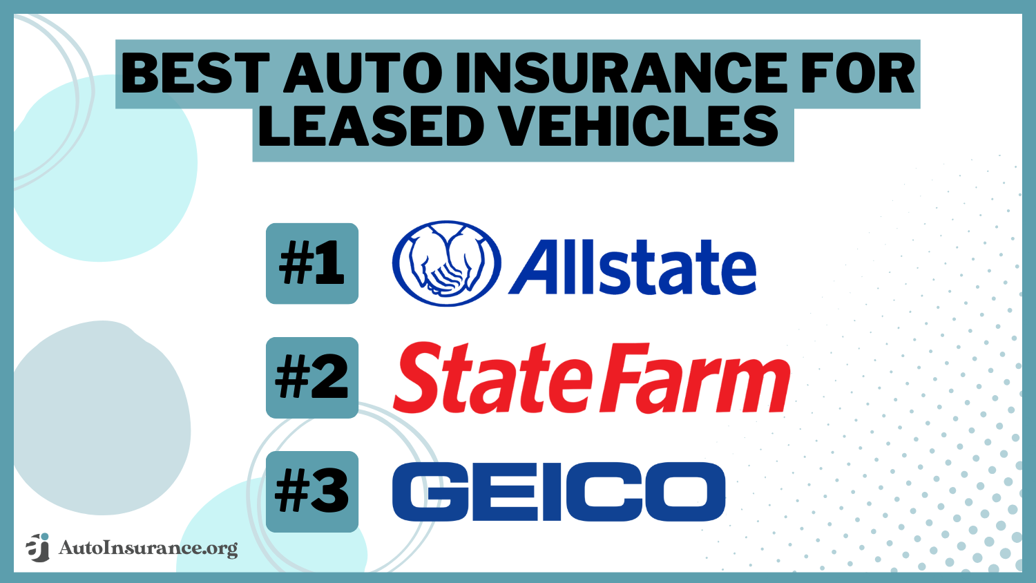 Allstate, State Farm, and Geico have the best auto insurance for leased vehicles, with Allstate rates starting at $61 monthly. The auto insurance requirements are the same regardless of whether you own or lease your vehicle. However, leasing companies can sometimes require additional car insurance on a lease.