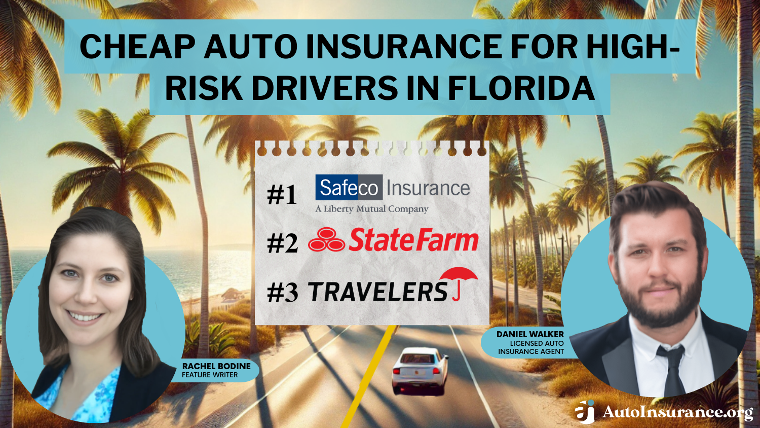 1,733 reviewsSafeco, State Farm, and Travelers are the top picks for cheap auto insurance for high-risk drivers in Florida, starting at $38 per month.