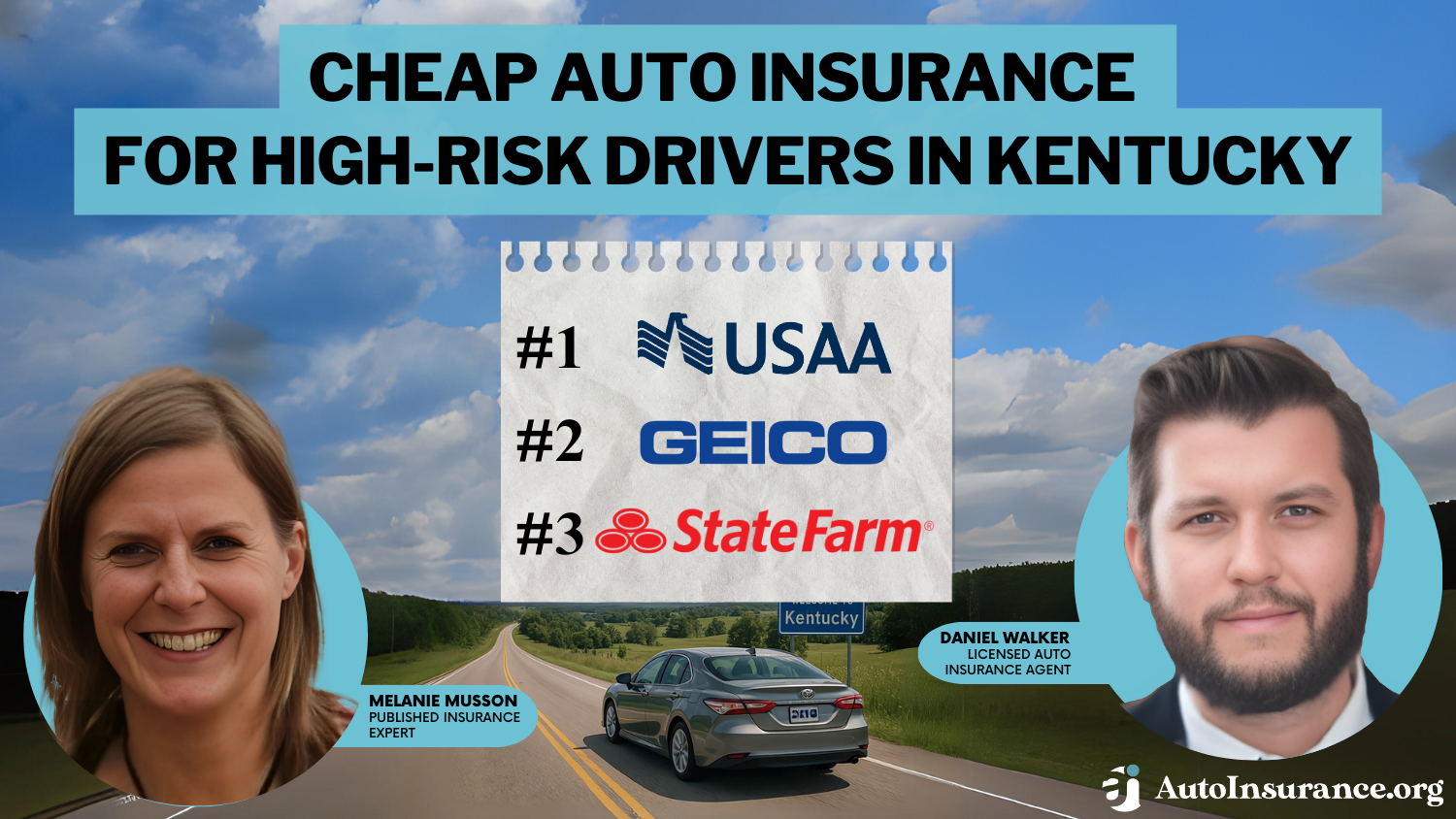 USAA, Geico, and State Farm offer cheap auto insurance for high-risk drivers in Kentucky, with rates starting at $32 per month. They provide excellent support for military members and suitable coverage for KY drivers, helping you budget with the average auto insurance cost in Kentucky.