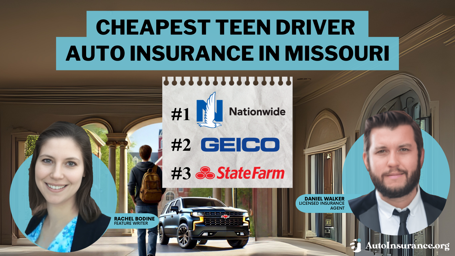 Nationwide, Geico, and State Farm have the cheapest teen driver auto insurance in Missouri, with rates from $153 per month. Nationwide offers flexible coverage for new drivers, Geico provides 25% bundling discounts, and State Farm rewards students—ideal for teen driver auto insurance in MO.