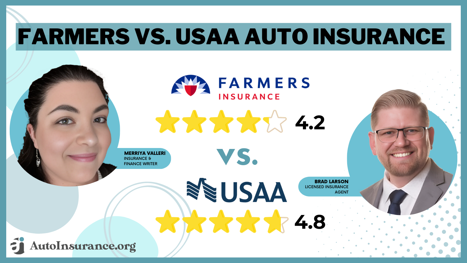 When comparing Farmers vs. USAA auto insurance, both are great auto insurance companies, but USAA has the better rates and ratings. However, USAA is available only to military members, veterans, and their immediate family members.