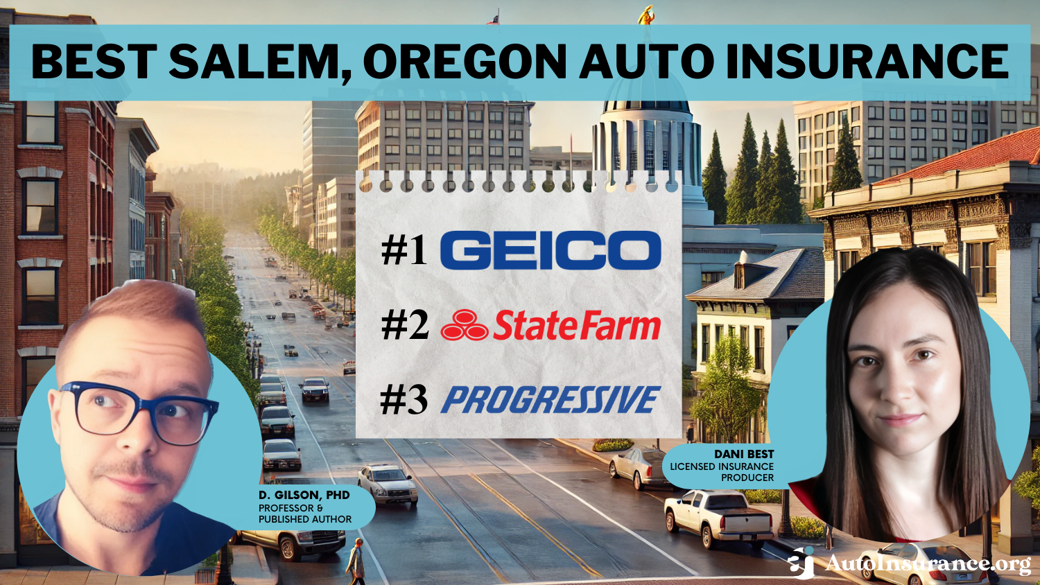 13,283 reviewsThe best Salem, Oregon auto insurance is offered by Geico, State Farm, and Progressive, providing affordable rates and comprehensive coverage options.