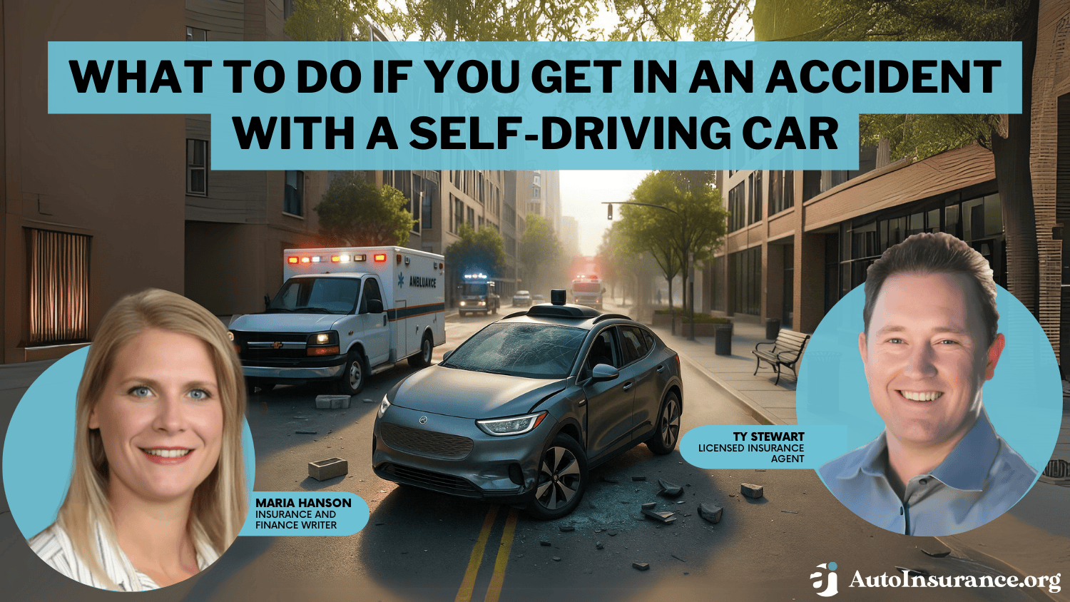 Read on to learn more about accidents with self-driving cars and how to protect yourself with the best types of auto insurance. If you are interested in finding auto insurance coverage for accidents today, use our free quote tool to find affordable companies near you.